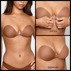 Cómo Quitarlo: Para quitarte el brasier adherible, abre el broche y suavemente desprende una copa primero y luego la otra, comenzando por el borde superior externo. Vuelve a aplicar los protectores al brasier adherible y guárdalo en la caja de regalo BOOMBA lejos de la luz solar.