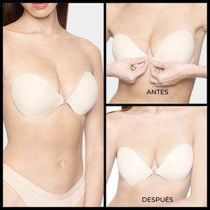 El Brasier Adherible Mágico de BOOMBA está diseñado de forma única para aumentar tallas de copa de forma discreta. El acolchado natural del brasier adherible de BOOMBA elimina el visible abultamiento que otros brasieres adheribles acolchados usualmente tienen. El nuestro está diseñado para curvarse con tus pechos, creando así un look natural con más volumen.