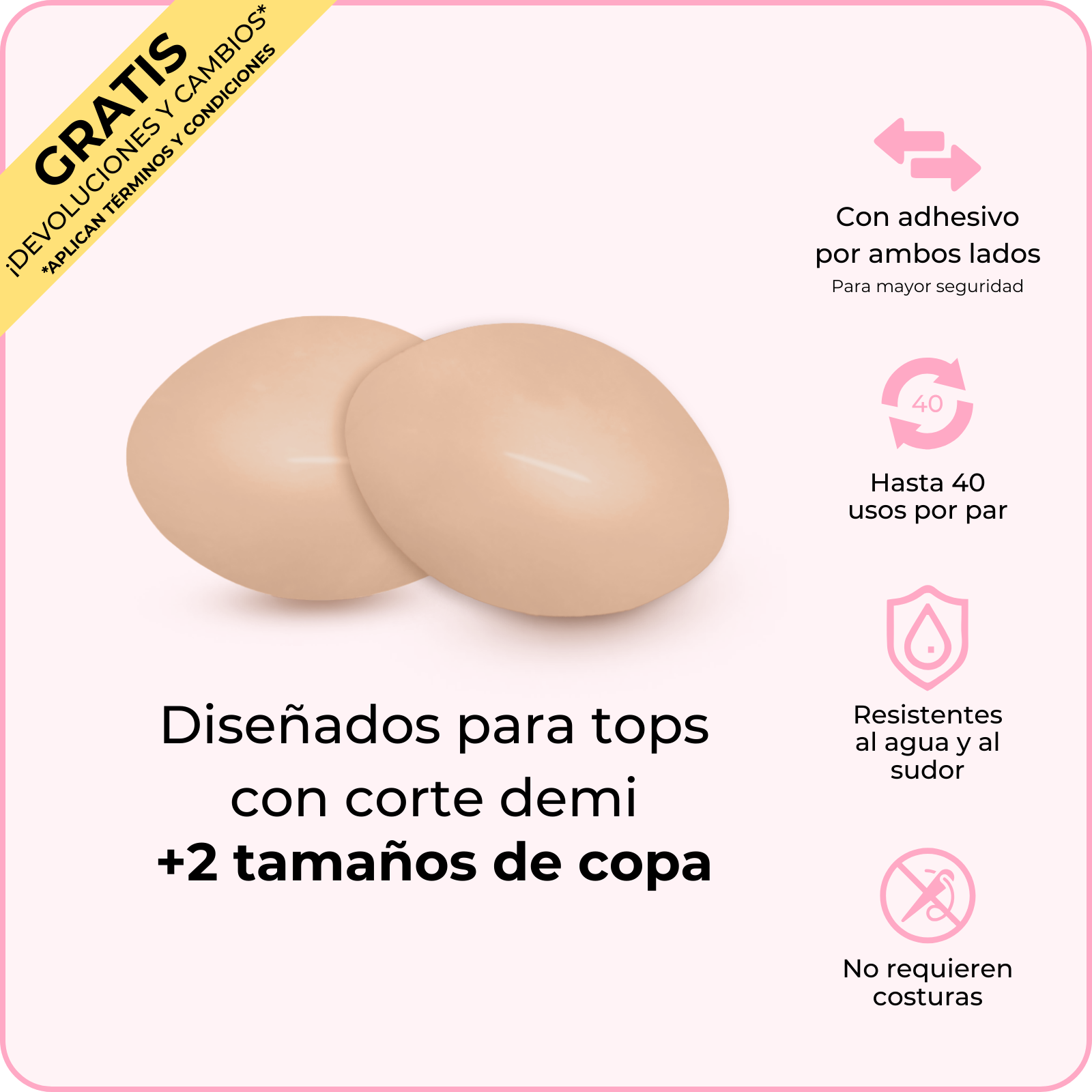 Rellenos Micro Lift: Creados específicamente para que no se noten debajo de micro bikinis. Ligeramente acolchados, diseñados para levantar y evitar que se asomen los pezones.