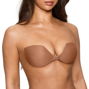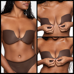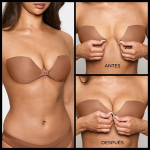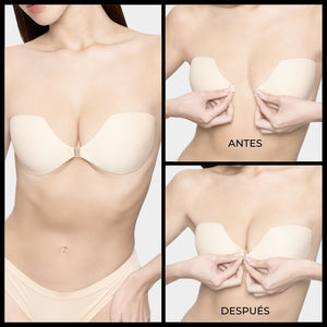 Cómo Quitarlo: Para quitarte el brasier adherible, abre el broche y suavemente desprende una copa primero y luego la otra, comenzando por el borde superior externo. Vuelve a aplicar los protectores al brasier adherible y guárdalo en la caja de regalo BOOMBA lejos de la luz solar.