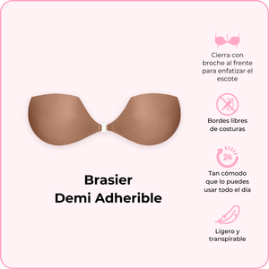 El Brasier Adherible Demi de BOOMBA tiene un diseño único. Las copas de nuestro Brasier Adherible Demi tienen un corte más bajo para asegurar que siempre se quede por debajo del escote de tu top. Las copas del brasier se amoldan a tus curvas naturales para brindarte un escote que se ve natural. Sus orillas libres de costuras también garantizan que se mantendrá liso bajo tu ropa para que no se distinga en tu atuendo.