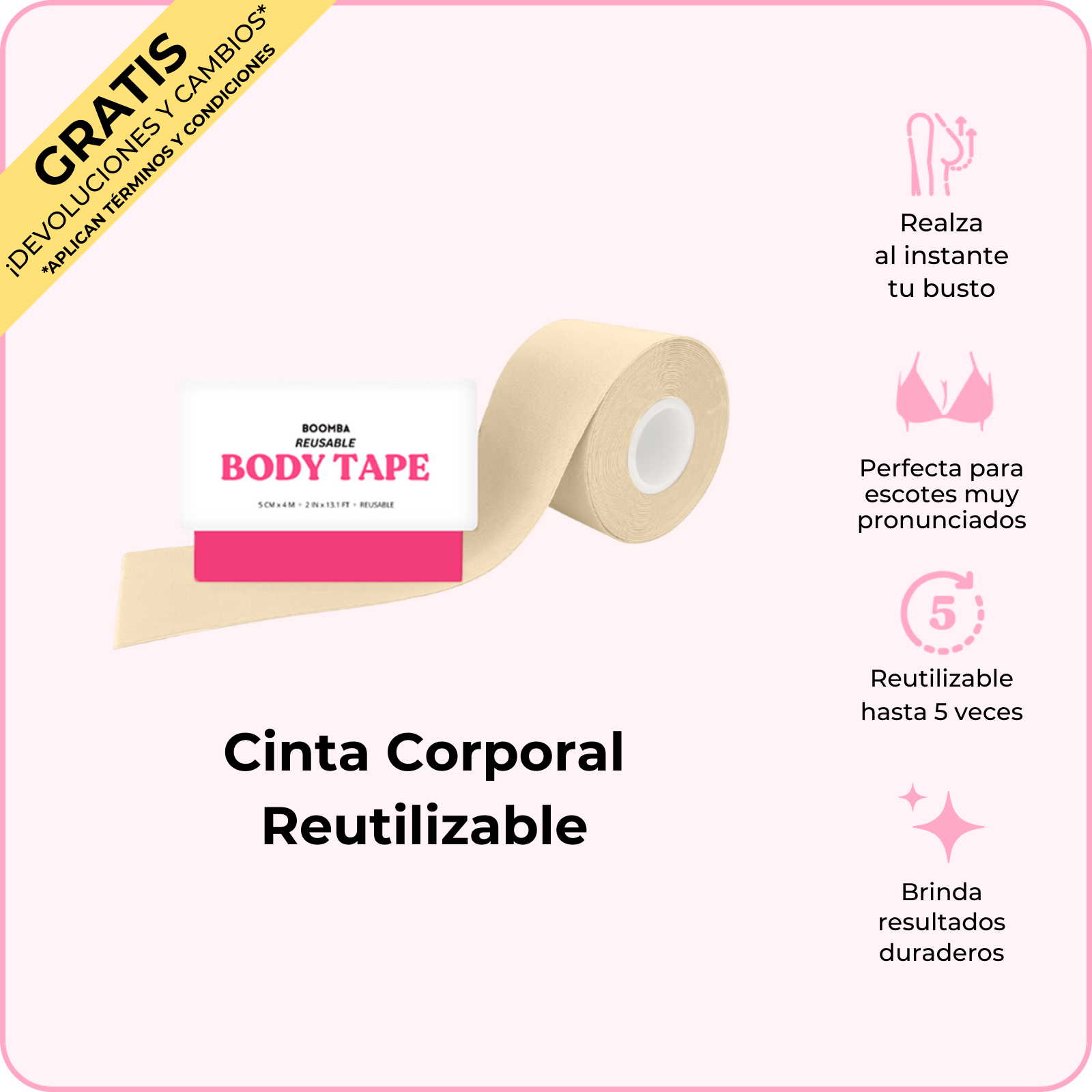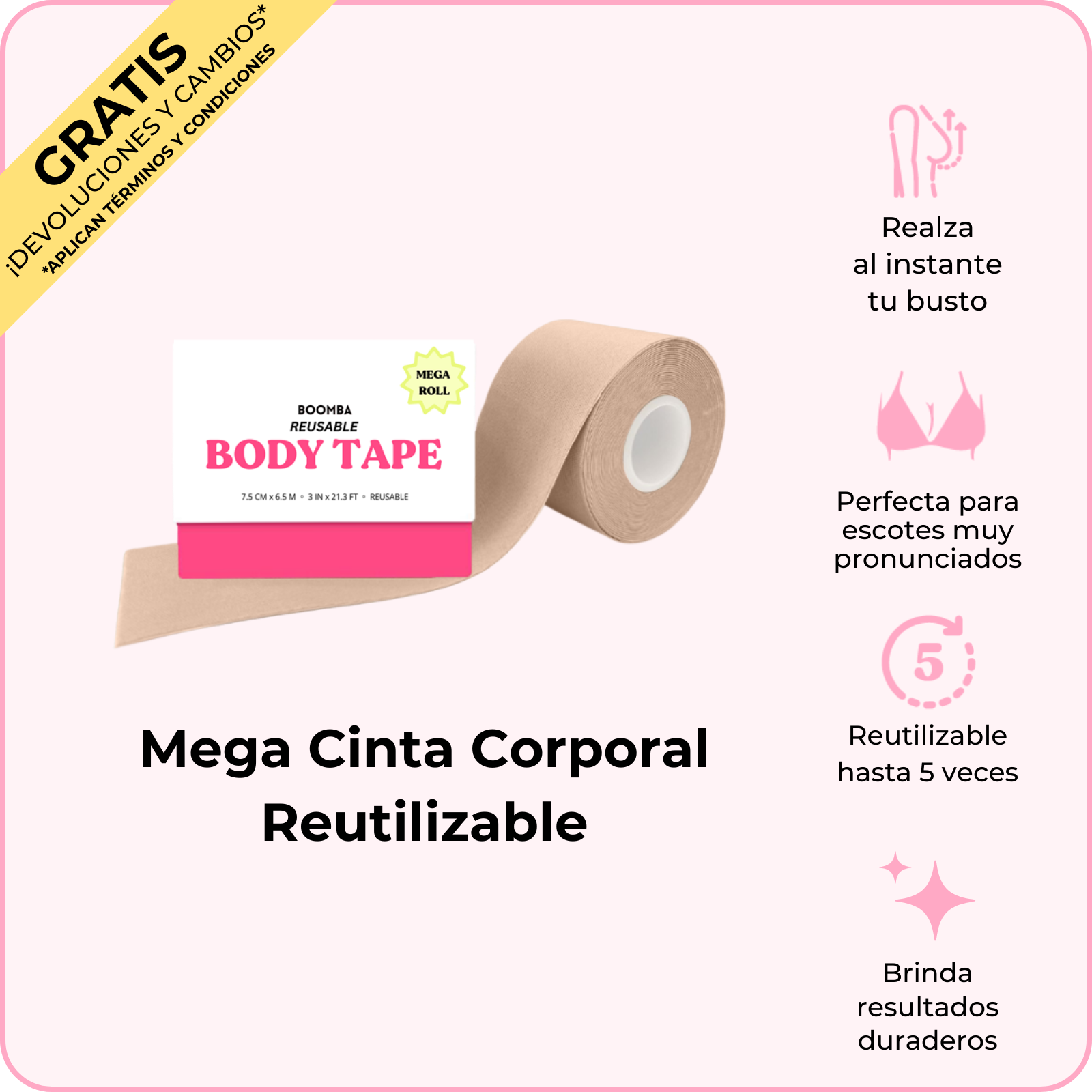 La Cinta Corporal Reutilizable BOOMBA puede ser usada hasta cinco veces. Diseñada para seguir el contorno de tus curvas, nuestra cinta corporal es suave pero resistente, brinándote resultados duraredos por hasta 12 horas.