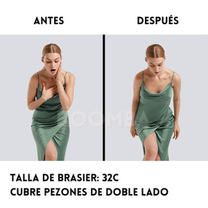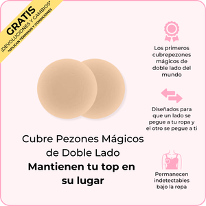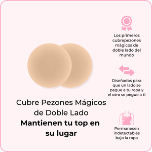 Los primeros cubre pezones mágicos de doble cara del mundo, diseñados para que un lado se adhiera a tu ropa y el otro a ti. Evitan que tus pezones se asomen a la vez que se mantienen indetectables debajo de tu ropa.