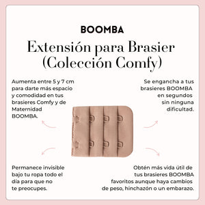Hay días en que simplemente necesitas que tu brasier favorito te dé un poco de más espacio. Nuestra Extensión para Brasier es una sencilla solución para cuando tus brasieres BOOMBA de uso cotidiano se sienten un poco apretados: ya sea porque tengas un cambio de peso, hinchazón, embarazo, o sólo quieras un poco más de comodidad al final de un día largo.