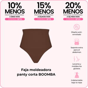 Esculpe, contornea y levanta con las fajas moldeadoras panty cortas de BOOMBA. Hechas con materiales gruesos y de la mejor calidad, te proporcionan una amplia cobertura a la vez que recogen el vientre de forma muy eficaz, proporcionándote una silueta elegante con la que te sentirás más segura de ti misma.