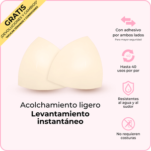 Rellenos Micro Lift: Creados específicamente para que no se noten debajo de micro bikinis. Ligeramente acolchados, diseñados para levantar y evitar que se asomen los pezones.