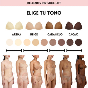 Rellenos Subtle Lift: La versión recortada de los Invisible Lift. Ligeramente acolchados, diseñados para levantar y dar forma sin aumentar volumen y usarse con escotes tipo corazón.