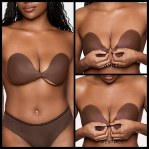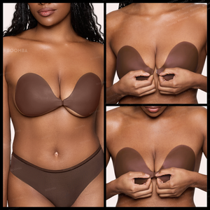 Cómo Quitarlo: Para quitarte el brasier adherible, abre el broche y suavemente desprende una copa primero y luego la otra, comenzando por el borde superior externo. Vuelve a aplicar los protectores al brasier adherible y guárdalo en la caja de regalo BOOMBA lejos de la luz solar.