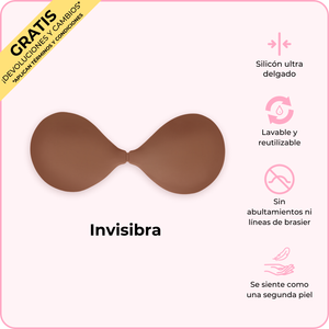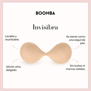 Cómo Limpiarlo: Este brasier adherible necesita de una limpieza suave a mano. No lo laves en la lavadora ni uses secadora. Utiliza agua tibia y un jabón suave. Utiliza la yema de tus dedos con delicadeza para limpiar el adhesivo, evitando el contacto con las uñas. Agíta con cuidado al brasier adherible para eliminar el exceso de agua y déjalos secar al aire en un lugar libre de polvo. Una vez que tu brasier adherible esté seco, aplica nuevamente los protectores y guárdalos en la caja de regalo BOOMBA alejados de la luz solar directa.