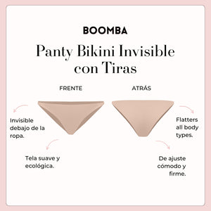 Conoce la Panty Bikini Invisible con Tiras de BOOMBA: ¡donde el confort y la elegancia se juntan! Con su diseño minimalista de tiras, estas pantys son tan ligeras y discretas que prácticamente se sienten como una segunda piel. Hechas de tela ultrasuave y transpirable, estarás cómoda todo el día y a la vez no se notará que las traes debajo de cualquier atuendo. Son como un recibir un cariño en tus caderas… ¡pero sin que sea raro!