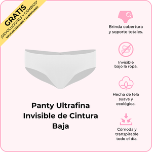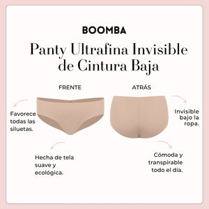 La Panty Ultrafina Invisible de Cintura Baja de BOOMBA es como tu poder secreto: ¡ultra suave, sin costura y muy cómoda! Con un corte bajo y hecha de tela transpirable, es invisible bajo la ropa y te da un aspecto suave y perfecto. Ideal para el uso diario o para ponértela debajo de tus atuendos ajustados favoritos. ¡La comodidad se une a la belleza!