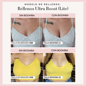 Rellenos Ultra Boost (Lite): Ligeramente acolchados para un aumento que se ve muy natural. Aumentan 1 talla de copa.