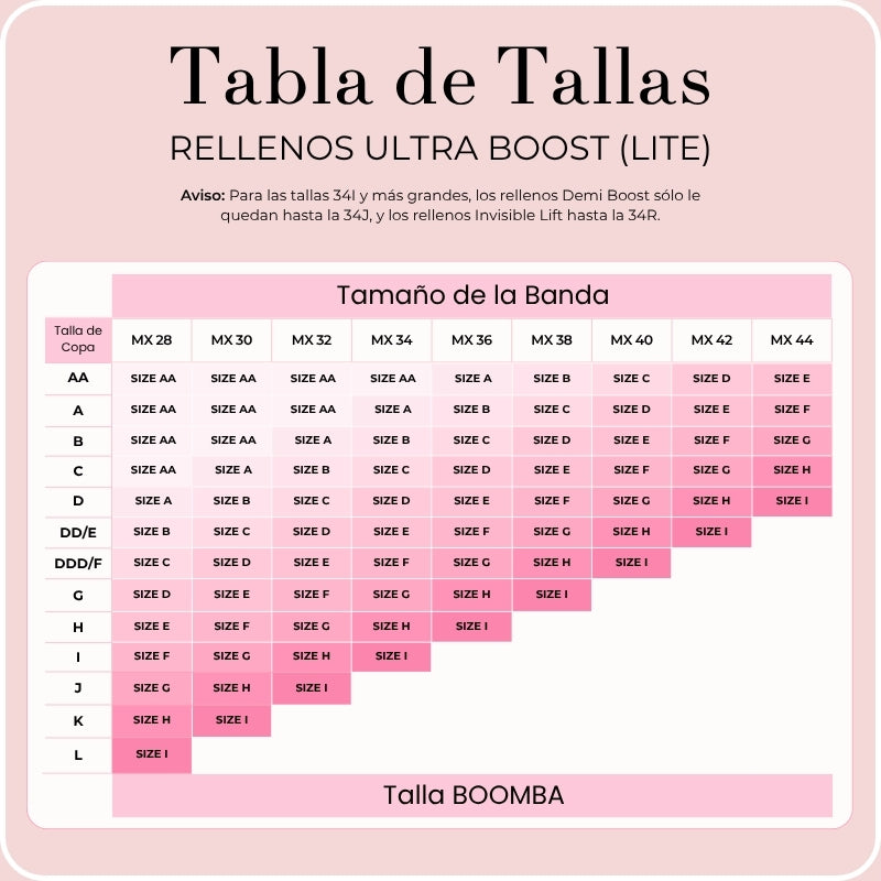 Rellenos Demi Boost (Lite) Tabla De Tallas
