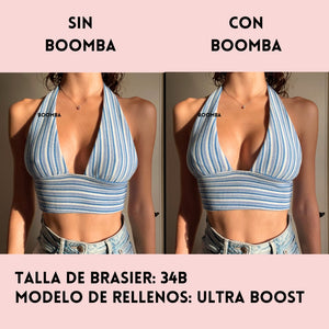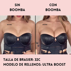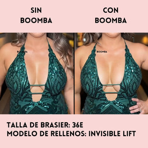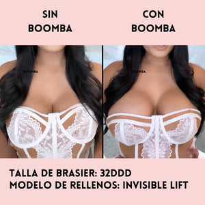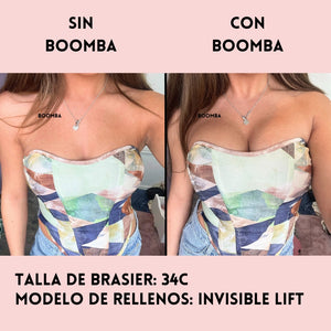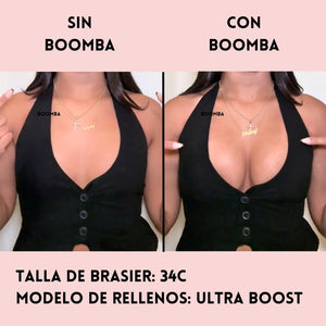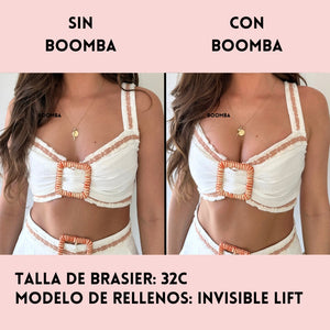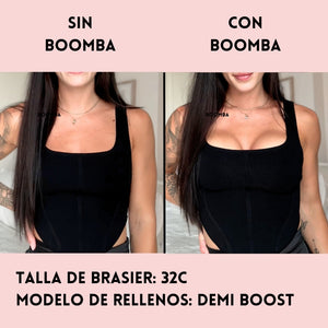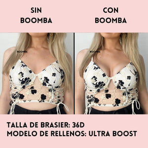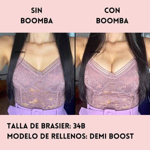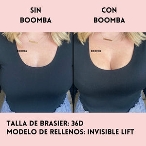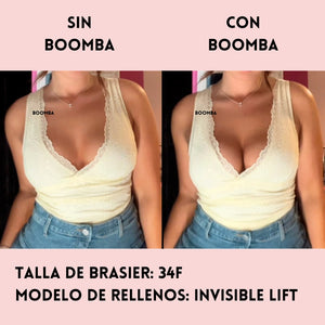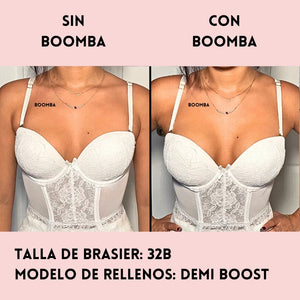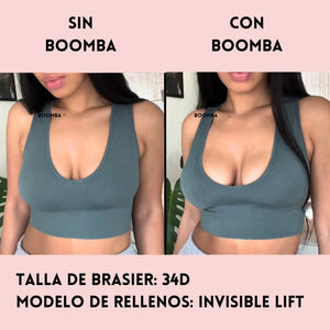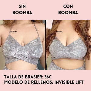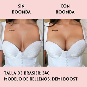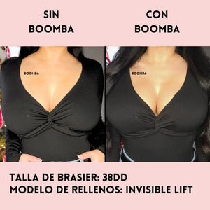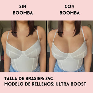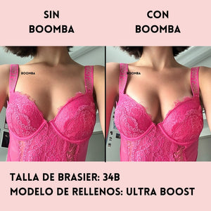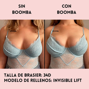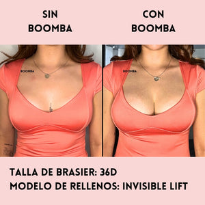 Ten en cuenta que los resultados pueden variar en función del tamaño y la forma del busto. Los resultados serán similares a los de un brasier con push-up doble. Los rellenos acolchados BOOMBA funcionan mejor en pechos naturales.