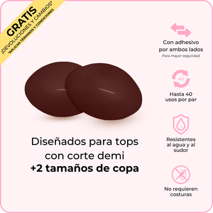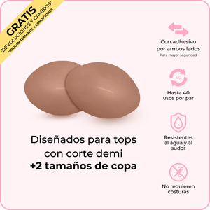 - Previene deslizamiento del pezón en blusas o vestidos de escote bajo