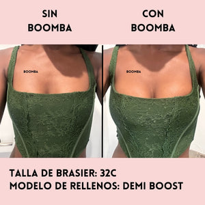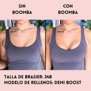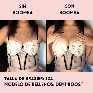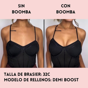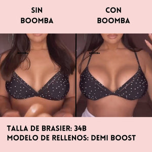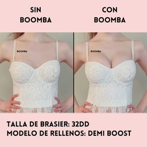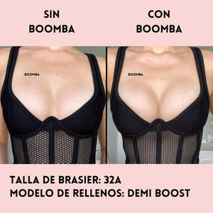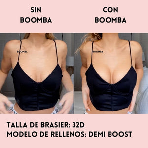 Ten en cuenta que los resultados pueden variar en función del tamaño y la forma del busto. Los resultados serán similares a los de un brasier con push-up doble. Los rellenos acolchados BOOMBA funcionan mejor en pechos naturales.