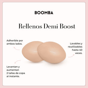 Rellenos Demi Boost: La versión recortada de nuestros rellenos Ultra Boost. Levantan y aumentan 2 tallas de copa, perfectos para escotes tipo corazón.