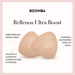 Rellenos Demi Boost: La versión recortada de nuestros rellenos Ultra Boost. Levantan y aumentan 2 tallas de copa, perfectos para escotes tipo corazón.