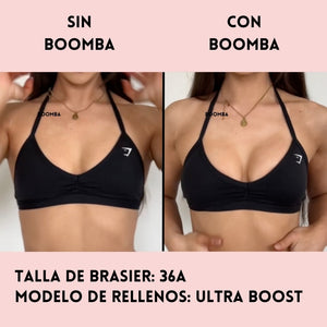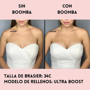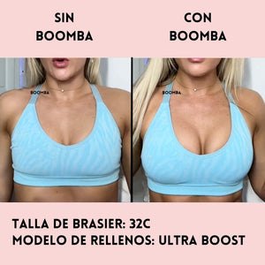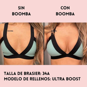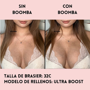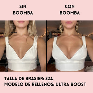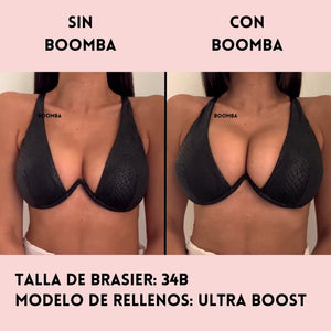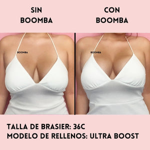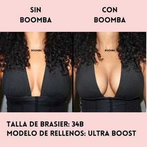 Ten en cuenta que los resultados pueden variar en función del tamaño y la forma del busto. Los resultados serán similares a los de un brasier con push-up doble. Los rellenos acolchados BOOMBA funcionan mejor en pechos naturales.