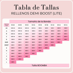 Rellenos Demi Boost (Lite) Tabla De Tallas