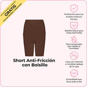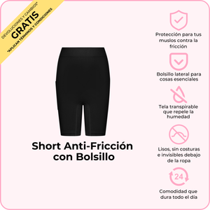 Confeccionado en tela ultra suave y transpirable, este short crea una barrera lisa y anti-fricción entre tus muslos, así podrás moverte con confianza y cómodamente durante tu día. Su discreto bolsillo guarda tu celular, trajetas o llaves sin generar bultos, dándote confort y conveniencia en una prenda sencilla.