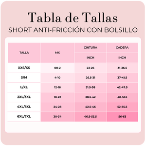 Guía para las tallas del Short Anti-Fricción con Bolsillo BOOMBA