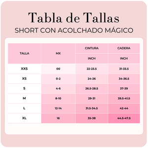 Guía de Tallas del Short con Acolchado Mágico BOOMBA